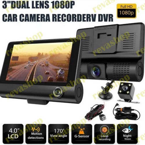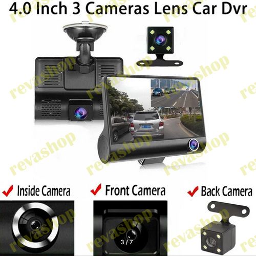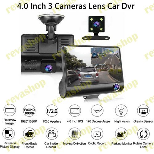 4-дюймовый черный монитор-экран. Автомобильный видеорегистратор 3 камеры объектив IPS HD экран 1080P двойной объектив видеорегистратор, передняя + камера заднего вида